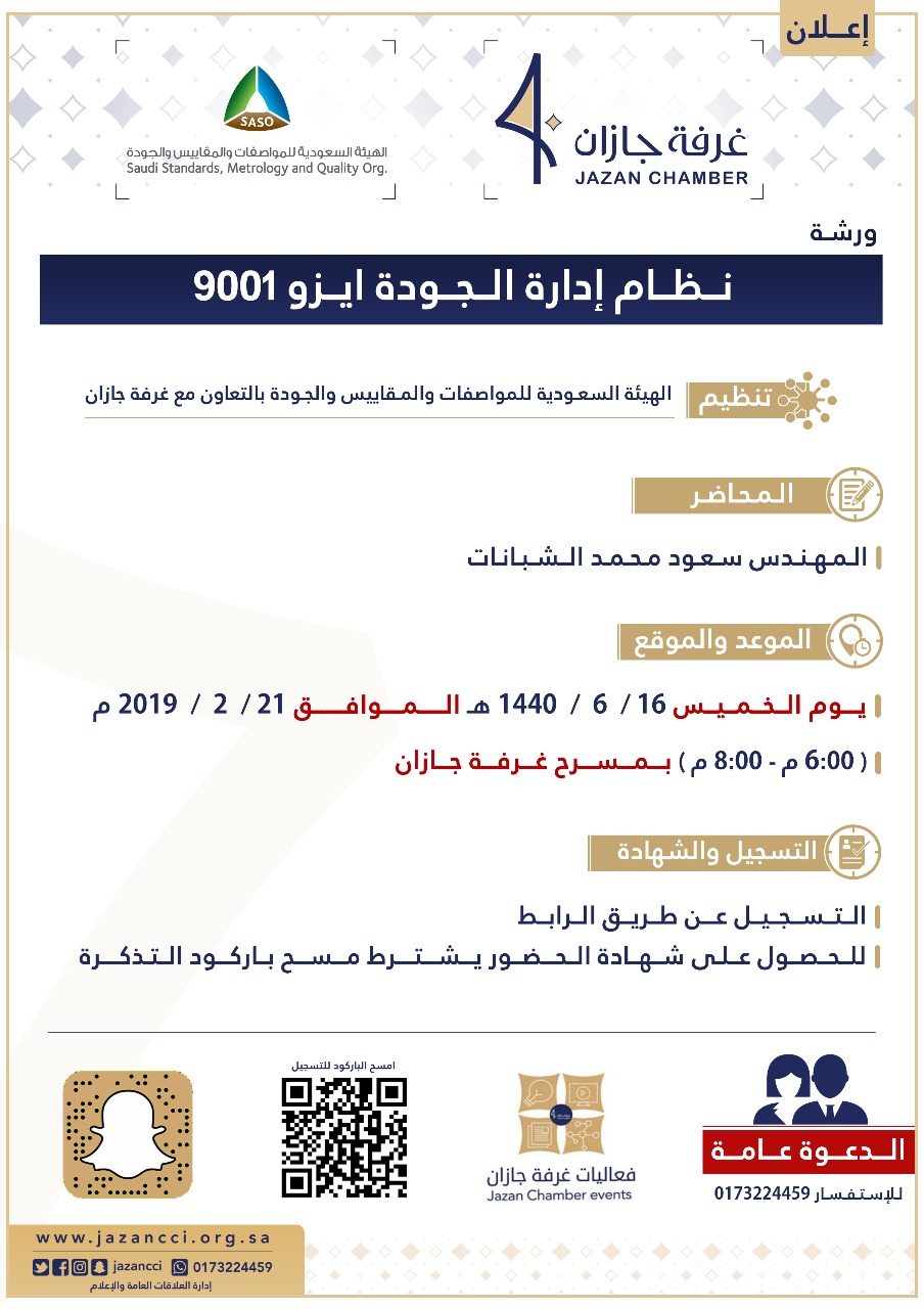 تنظيم الهيئة السعودية للمواصفات والمقاييس والجودة بالتعاون مع غرفة جازان