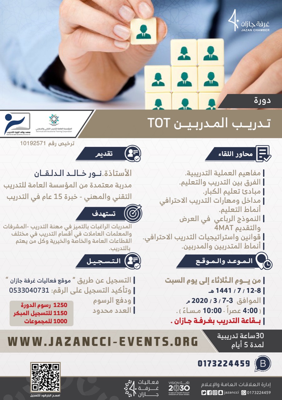 (من الساعة 4:00 عصراً إلى الساعة 10:00 مساءً ) بقاعة التدريب بغرفة جازان