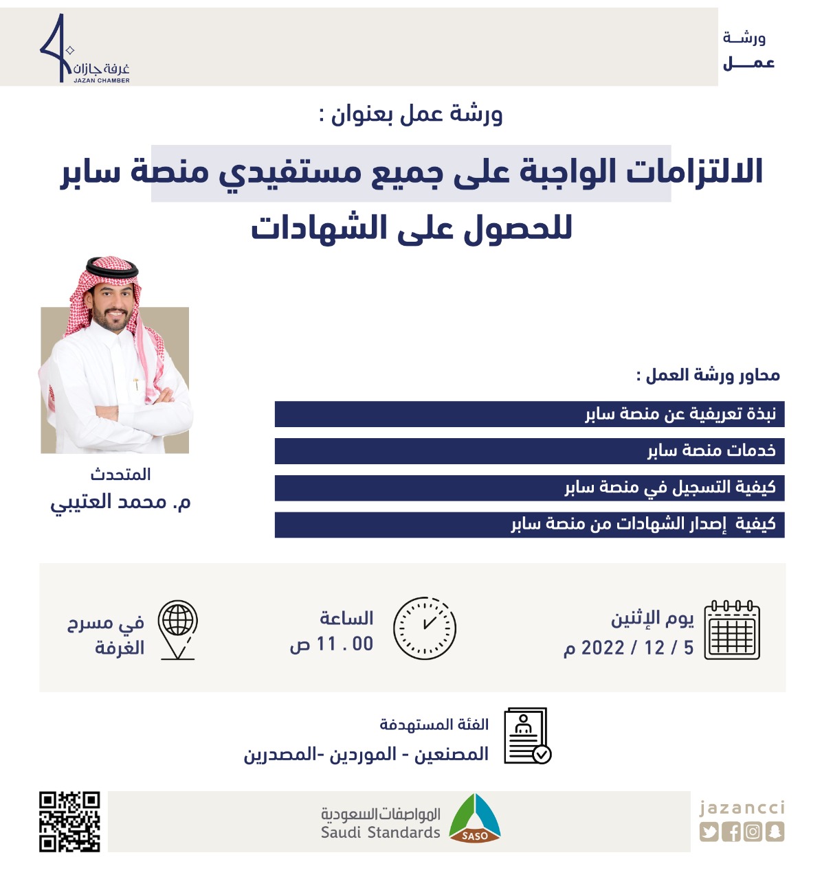 ورشة عمل بعنوان : الالتزامات الواجبة على جميع مستفيدي منصة سابر للحصول على الشهادات