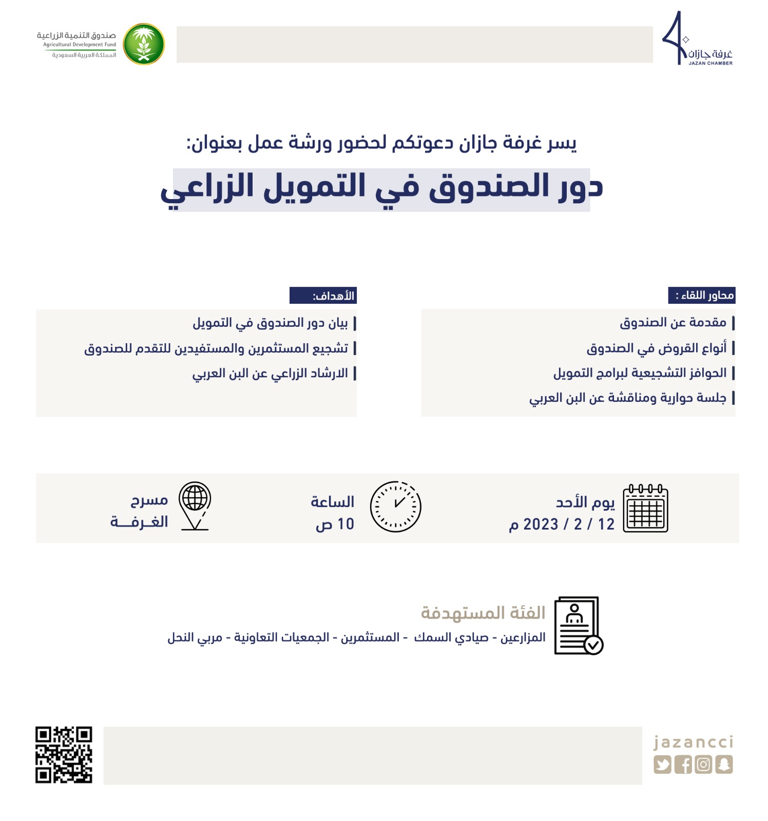 يسر غرفة جازان دعوتكم لحضور ورشة عمل بعنوان :
