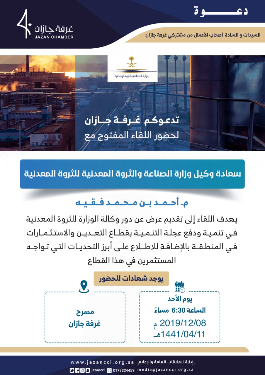 إستضافة غرفة جازان لسعادة وكيل وزارة الصناعه والثروة المعدنية للثروة المعدنية