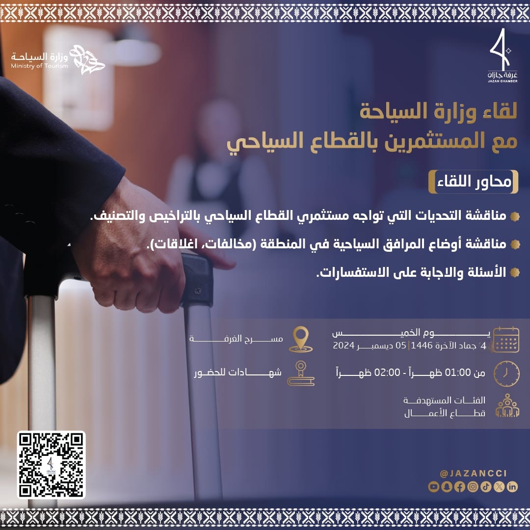 عنوان ورشة العمل: لقاء وزارة السياحة مع المستثمرين بالقطاع السياحي.