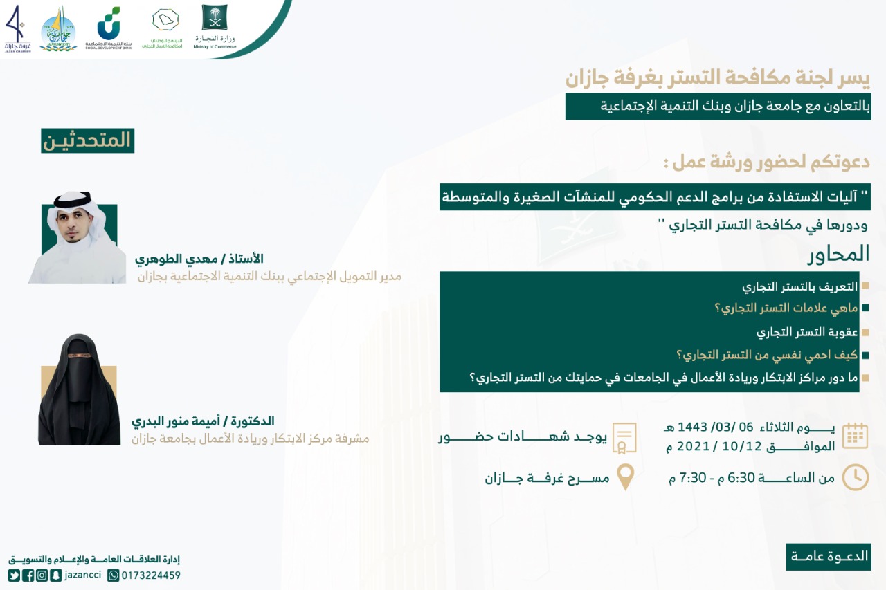 يسر لجنة مكافحة التستر بغرفة جازان بالتعاون مع جامعة جازان وبنك التنمية الإجتماعية