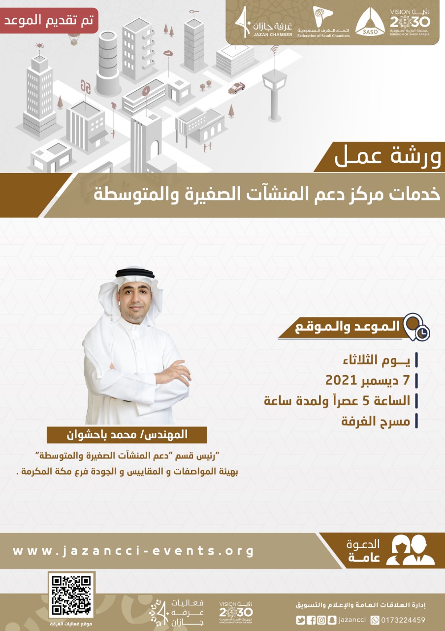 اسم المتحدث:المهندس/ محمد باحشوان "رئيس قسم "دعم المنشآت الصغيرة والمتوسطة" بهيئة المواصفات و المقاييس و الجودة فرع مكة المكرمة