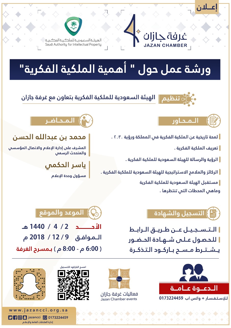 تنظيم الهيئة السعودية للملكية الفكرية بالتعاون مع غرفة جازان